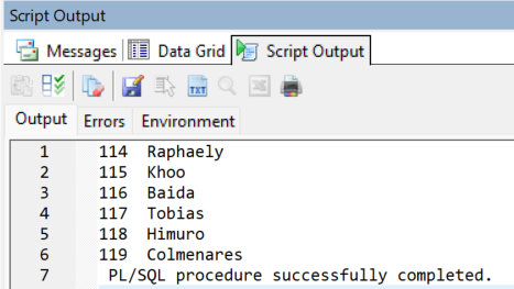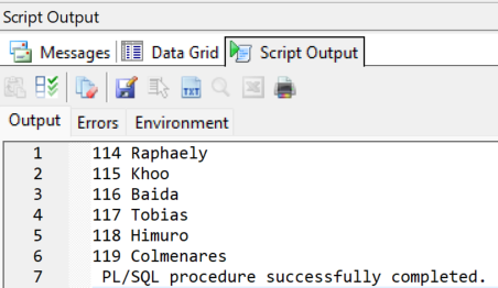 DBMS_OUTPUT.PUT_LINE( v_empno ||'  '||v_lname);