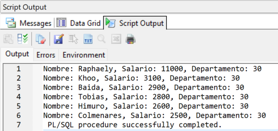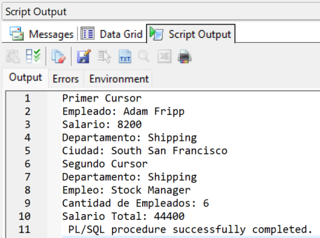 DBMS_OUTPUT.PUT_LINE('Segundo Cursor');