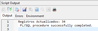 DBMS_OUTPUT.PUT_LINE ('Registros Actualizados: '||v_cantidad);