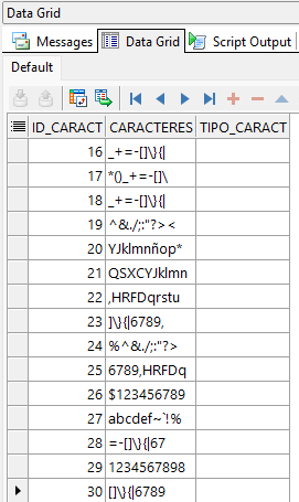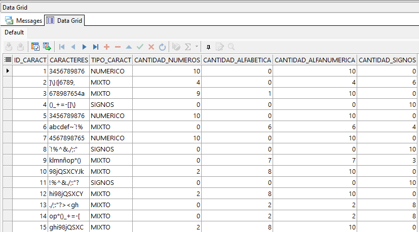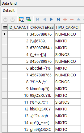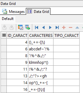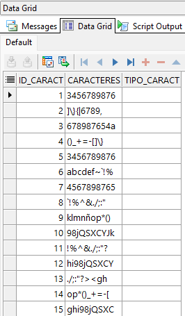El script anterior crea la tabla tabla_caracteres, la cual usaremos para nuestros futuros ejemplos.