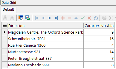 En este ejemplo usamos la función REGEXP_COUNT para contabilizar la cantidad de caracteres numéricos [:digit:], alfabéticos [:alpha:], alfanuméricos [:alnum:] y signos de puntuación [:punct:] de cada registro.