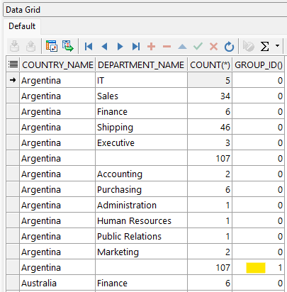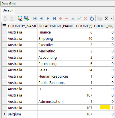 Esta Función es útil para filtrar agrupaciones duplicadas del resultado de la consulta, esto porque para cada grupo único, la función GROUP_ID devolverá 0. Cuando se encuentra grupos duplicados, la función GROUP_ID devolverá un valor > 0; si existen n cantidad de duplicados en una consulta el resultado retornado seria n-1.