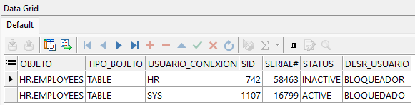 Sin embargo, esta vista no proporciona información directa sobre los objetos bloqueados (como el nombre de la tabla o el recurso específico). Por esta razón, suele complementarse con otras vistas como DBA_BLOCKERS, DBA_WAITERS, V$SESSION y V$ACCESS, las cuales permiten obtener una visión más completa de las sesiones involucradas y del origen del conflicto.