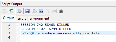 DBMS_OUTPUT.PUT_LINE('SESSION '||i.sid||'-'||i.serial#||' KILLED');