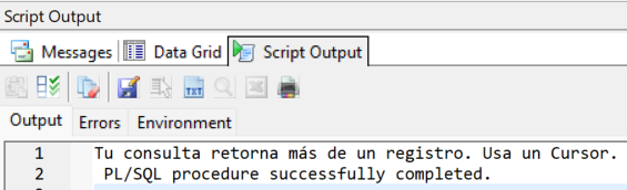 DBMS_OUTPUT.PUT_LINE ('Tu consulta retorna más de un registro. Usa un Cursor.');