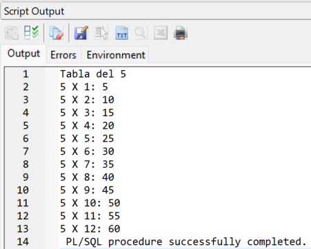 DBMS_OUTPUT.PUT_LINE(v_numero||' X '||i||': '||i*v_numero);