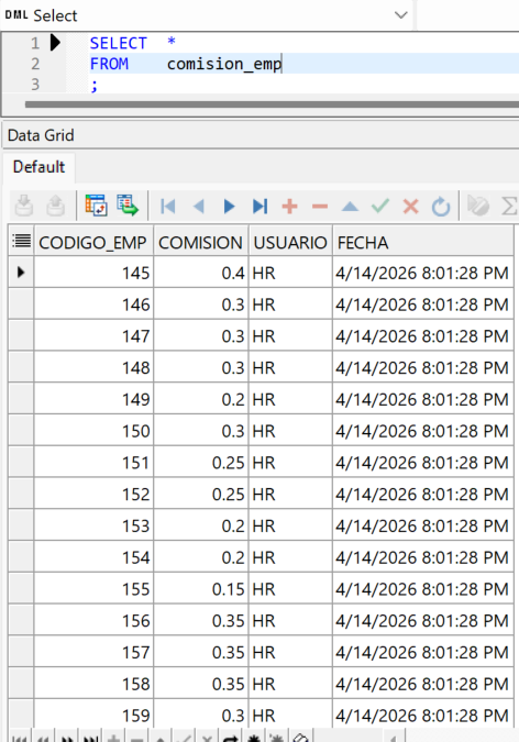 VALUES(rec.emp,rec.comision,USER,SYSDATE);