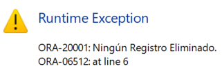 RAISE_APPLICATION_ERROR(-20001, 'Ningún Registro Eliminado.');