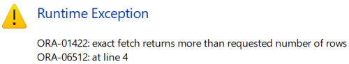 sin embargo, al ejecutar el código se presenta el siguiente error: ORA-01422: exact fetch returns more than requested number of rows